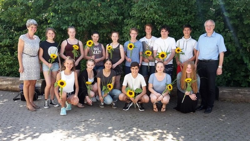 Die Prüfungen bestehen aus einem schriftlichen sowie einem mündlichen Teil, die beide jeweils die Hälfte der Gesamtpunktzahl ausmachen. In der Zeit von September bis März trafen sich die engagierten Schülerinnen und Schüler zusätzlich zum regulären Unterricht einmal pro Woche, um sich gemeinsam mit der Englischlehrerin Renate Kwieczinsky auf die 2016 Cambridge 31Prüfungen vorzubereiten. Am Donnerstag, dem 14. Juli 2016, durften die glücklichen Schülerinnen und Schüler in Müllheim ihre Zertifikate in Empfang nehmen. 98 Schüler aus dem gesamten Schulamtsbezirk Freiburg nahmen in diesem Jahr teil, um eines der Zertifikate, die weltweit anerkannt sind, zu erhalten. Seit dem Beginn der Cambridge Prüfungen vor 16 Jahren war die Theodor-Frank-Realschule jedes Jahr mit Erfolg dabei und kann sich somit zum festen Kern der Prüfungsteilnehmer zählen. Die Jugendlichen hatten große Freude sowohl am vorbereitenden Unterricht als auch an der Prüfung und den damit verbundenen Erfahrungen. Sie sehen die Cambridge-Prüfung als gute Vorbereitung für die englischen Abschlussprüfungen im nächsten Schuljahr.