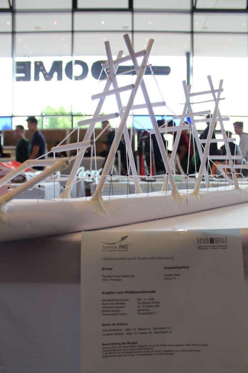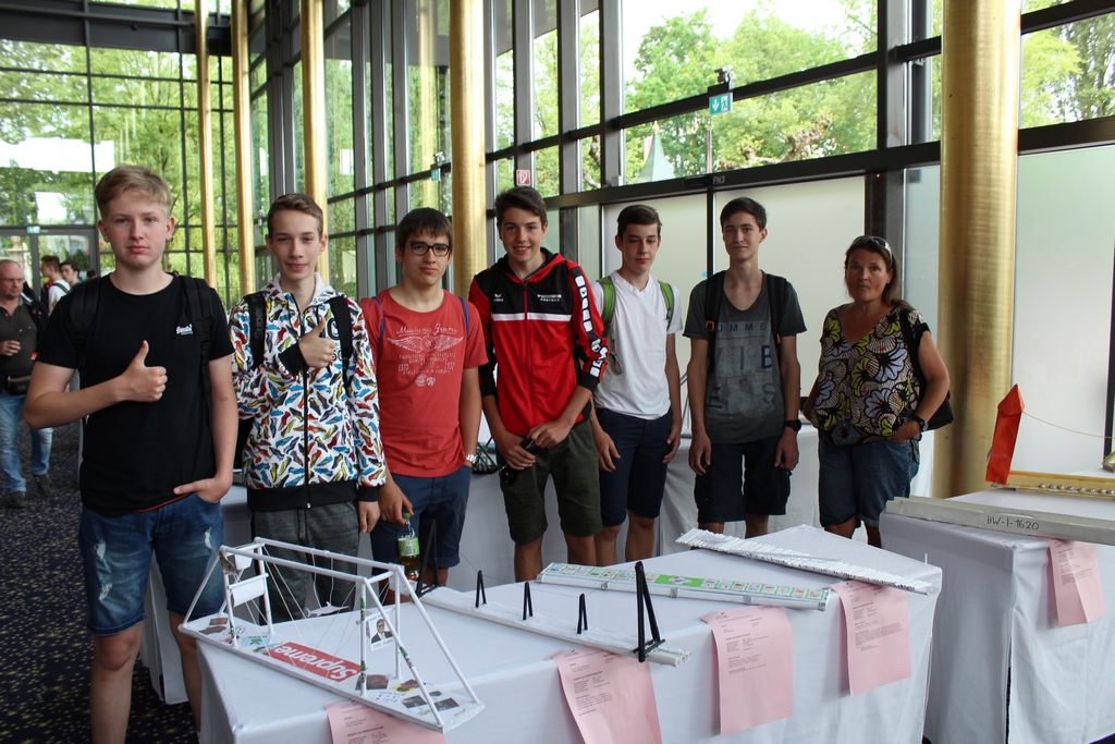 Sechs Schüler waren mit ihrer Technik-Lehrerin Annette Stark am 9. Mai 2018 zur Ausstellung und Landes-Preisverleihung in den Europapark-Dome eingeladen. Die besten Modelle aus ganz Baden-Württemberg, insgesamt 977, wurden im Foyer des Doms in einer sehr aufwändigen Ausstellung präsentiert.