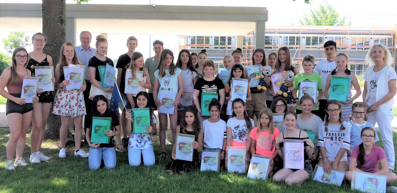 Folgende Teilnehmer der Klassen 5-7 freuten sich über einen Ortspreis zum Thema „Parlament der Tiere“: Amelie Gut (Klasse 6a), Johanna Bührer und Chiara Lee Grothaus und Marie-Louisa Imhof (alle Klasse 6c), Charline Zimmermann (Klasse 5c); zum Thema: „Augen auf!“ Lovis Lommatzsch (Klasse 7a), Cyra Grunitz, Milena Hipp und Nora Krämer, Lina Bühler und Feline Burtsche und Levinia Mößinger, Mariella de Martino und Indira Kern (alle Klasse 5a), Tahani Alsaeed und Amal Hussein (beide Klasse 5c), Marlen Jahnz, Marcel Kern, Alina Lichtle und Sarah Omeirat (alle Klasse 5d).