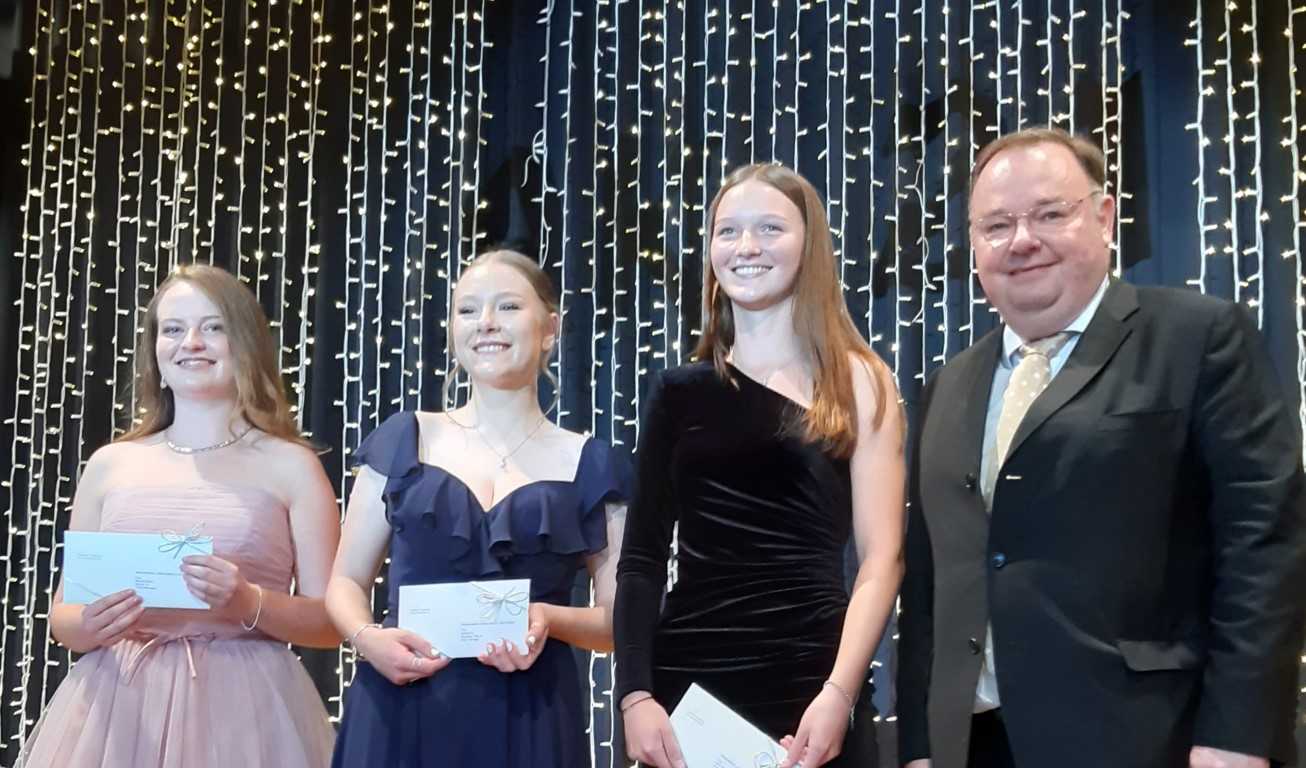 Abb. 01: Den Bürgermeisterpreis in der Realschule erhielten: (von links nach rechts) Máxima Braun, Maribel Ott, Anne Steiner und Bürgermeister Heinz-Rudolf Hagenacker